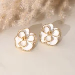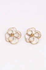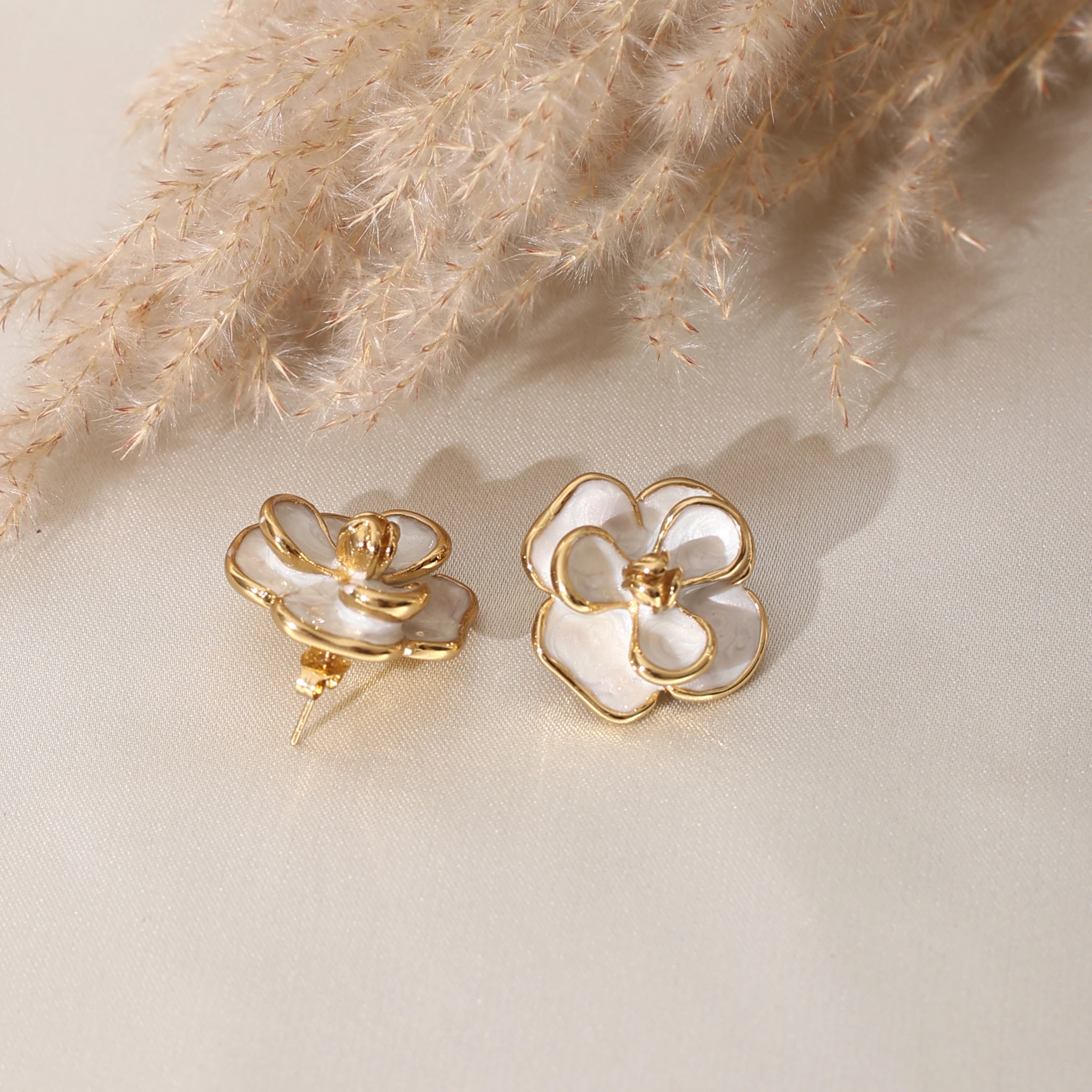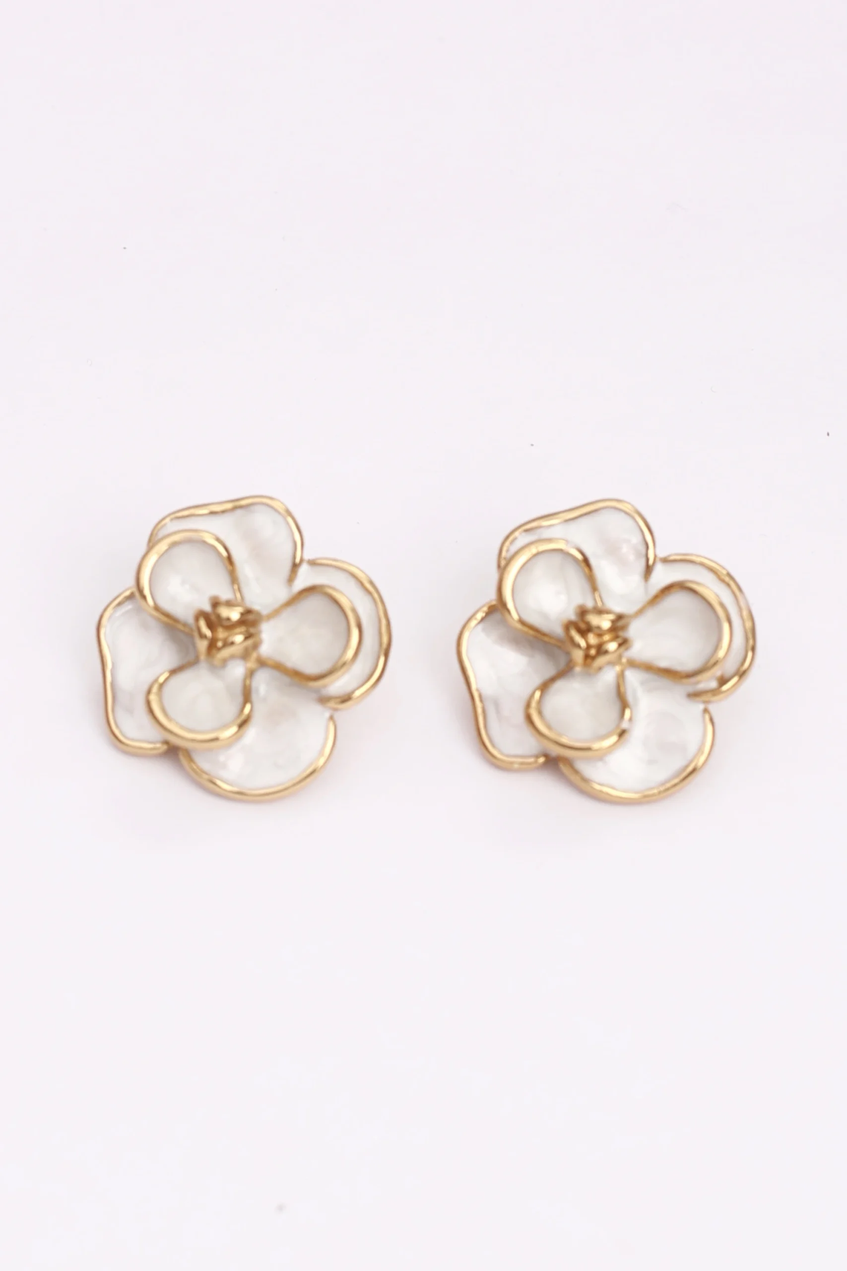 Exquisite floral stud earrings featuring lustrous white enamel petals outlined in gold, bringing a timeless feminine charm to any look.