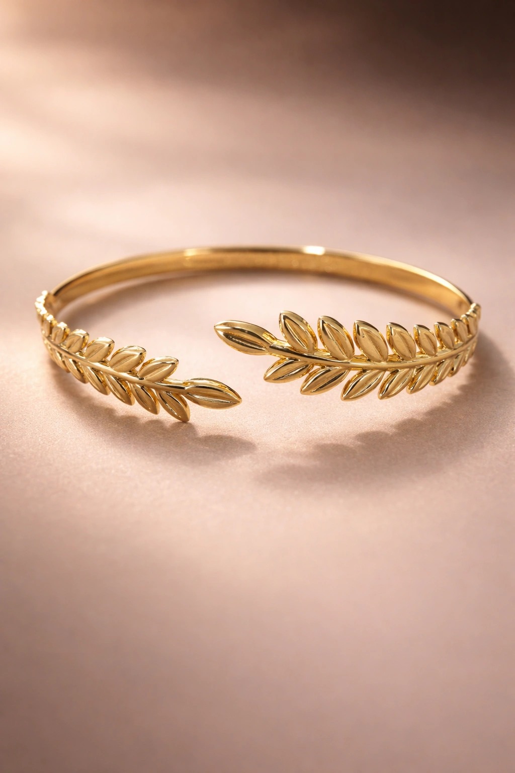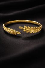 Designed in an open cuff style, this statement piece showcases beautifully detailed golden leaves, making it a perfect blend of minimalism and elegance. The adjustable bracelet fits comfortably on the wrist, making it suitable for daily wear, office looks, or festive occasions. Whether you’re dressing up for a party or looking for a unique everyday accessory, this gold leaf wrap bangle is sure to become your go-to jewelry piece.